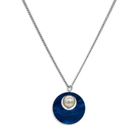 Charming Pearl Circle Pendant - Midnight Blue Swirl