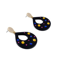The coloured crystals embedded in the acrylic teardrop shape will catch the light - and the compliments. An easy-to-wear style with added bling.