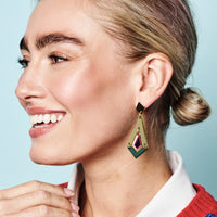 Sharp and stylish, with a touch of swing. The Art Deco influence is strong in these geometric drop earrings; and the beautifully matched colourways have a vintage vibe too. They’ll catch the light and shimmer all the way to the dance floor with you.