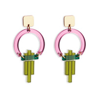 Petite Art Deco Chandelier Earrings - Pink Mirror and Lime Zest Green