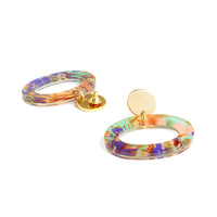The Ohs are a statement twist on the classic hoop, and each colour has a unique marble effect running through it. These bold, lightweight earrings look great with everyday outfits, adding a touch of fun and colour.