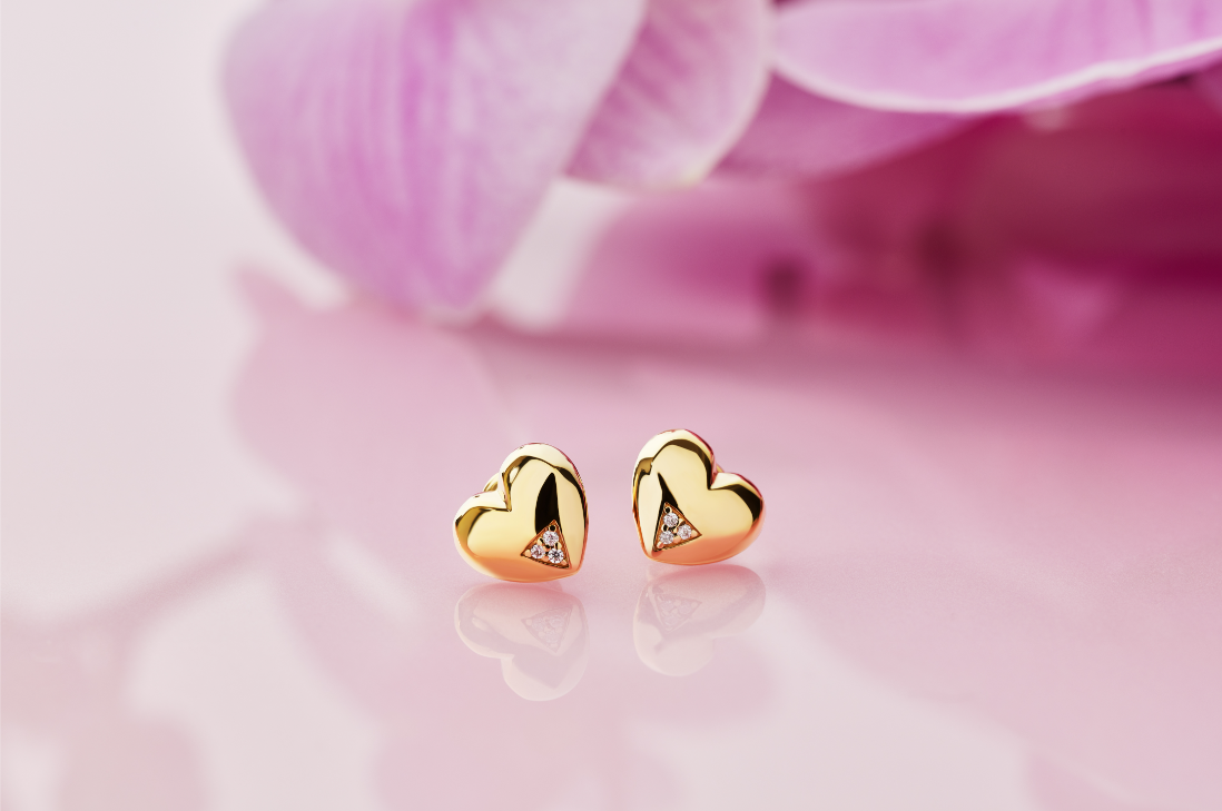 Incredibly versatile, our Art Deco Hearts Studs in Gold cz bring a sense of sophisticated luxury to any outfit.