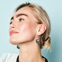 Elegance and sophistication, with a bit of something extra. The speckled acrylic discs are the perfect partners for the shimmering pearls. A contemporary take on a classic style.