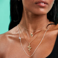 The bubble bolt long pendant in Sterling Silver brings an extra zap of energy to your outfit. Designed for layering, the pendant hangs to one side to stand out alongside other pieces in the Beats and Bolts series.