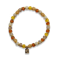 Embrace the warm and cosy colours of autumn with this beaded bracelet. Made with studio-cut coloured acrylic discs, your new favourite accessory is hand-threaded in our studio. Wear it solo or layer with a selection of our other bracelets for a kaleidoscope of colour.