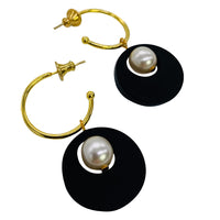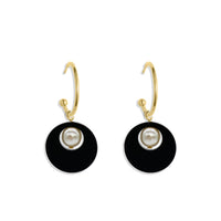 Charming Pearl Circle Earrings - Black
