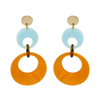 Swinging Circle Drop Earrings - Orange Pearl & Island Blue