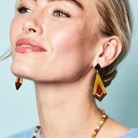Art Deco Diamond Drop Earrings - Caramel Swirl, Tortoiseshell & Earth