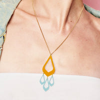 Instantly inject some glamour and joy to your day with the striking shape and bold colours of the Feather Drop. Wear as a statement pendant that picks out a colour from an outfit, or layer it with a couple of shorter pendants and chains for an edgier look.