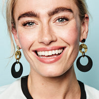 Swinging Circle Drop Earrings - Black & White Tortoiseshell